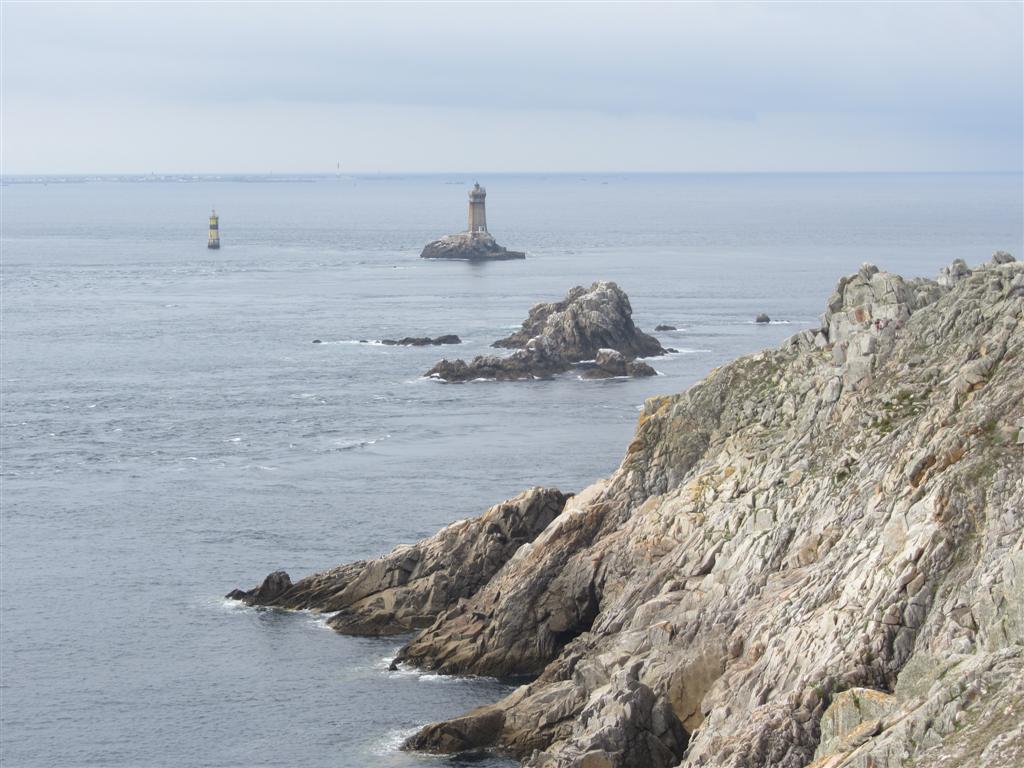 Vi parkerer bilen på den store parkeringsplassen ved Pointe du Raz for å fortsette til fots ut på klippeavsatsen, som markerer Frankrikes vestligste punkt. Det er storslått natur med en praktfull utsikt ut over Atlanterhavet, som i dag viser seg fra sin mer rolige side. Det er et godt stykke å gå, men stien er bred og jevn, så barnevogner og rullestoler også kan komme ut dit. På veien ut ser man også en stor flott statue til minne om de falne under 2. Verdenskrig.