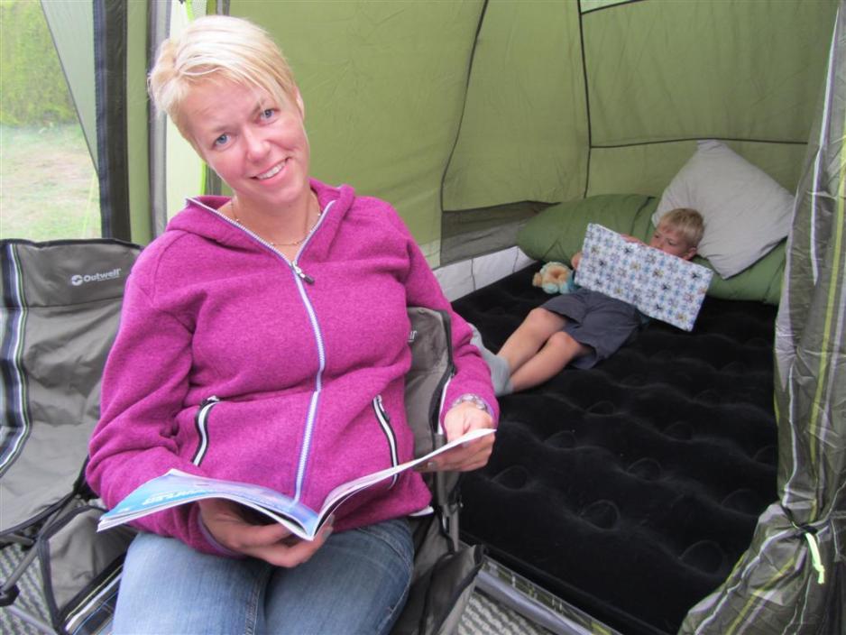 Kveldstimene er alltid spesielle når vi er på campingferie. Alt etter hvor mye vi har opplevd i løpet av dagen er vi enten bare trøtte eller helt utslitt. Uansett tilstand så sover vi utrolig godt i teltet, der den friske luften, gjør at vi faller i dyp søvn i de lune soveposene. Og så er det en fryd å våkne opp neste dag til fuglekvitter og vinden i trærne. Klar for en ny dag.
