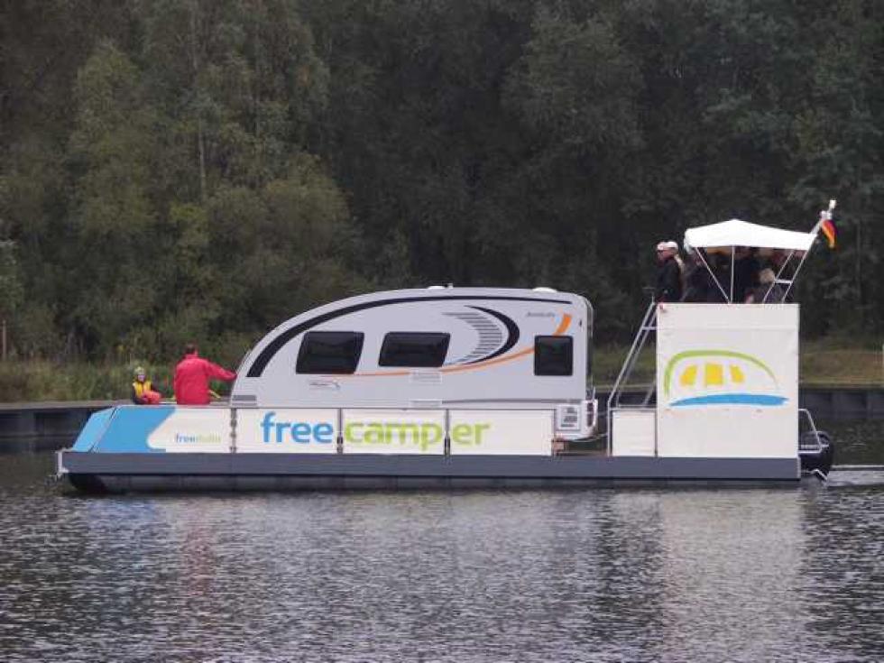 WoMoCamper gjør det mulig og utforske elver og andre vannveier i Ruppiner Land i det man betegner som “All Around Berlin” med motorbåt. Fram til nå har denne muligheten kun vært tilgjengelig for eiere av campingvogner med noe man har betegnet som Freecamper. Den nye båttypen gir altså nå også bobileiere mulighet til å bli sin egen skipper, uten at noe båtførerbevis er nødvendig. Grunnet den ekstra vekten av bobilen er båttypen det man betegner som en “trimaran”. Mannen bak prosjektet, Markus Frielinghaus, forklarer at den nye båttypen beregnet på bobiler har styreanordning i fronten, noe som gjør at også høyere bobiler kan brukes. Den blir drevet av en 60 hk påhengsmotor, og med både baug og akterpropell skal manøvreringen være enkel. Det er også mulighet for tømming av spillvann- og toalettanker under turen.Hvis du føler at det er tid for å bytte fra land til vann har du nå altså muligheten i New Harbour i Ziegeleipark, rundt 75 km nord for Berlin.