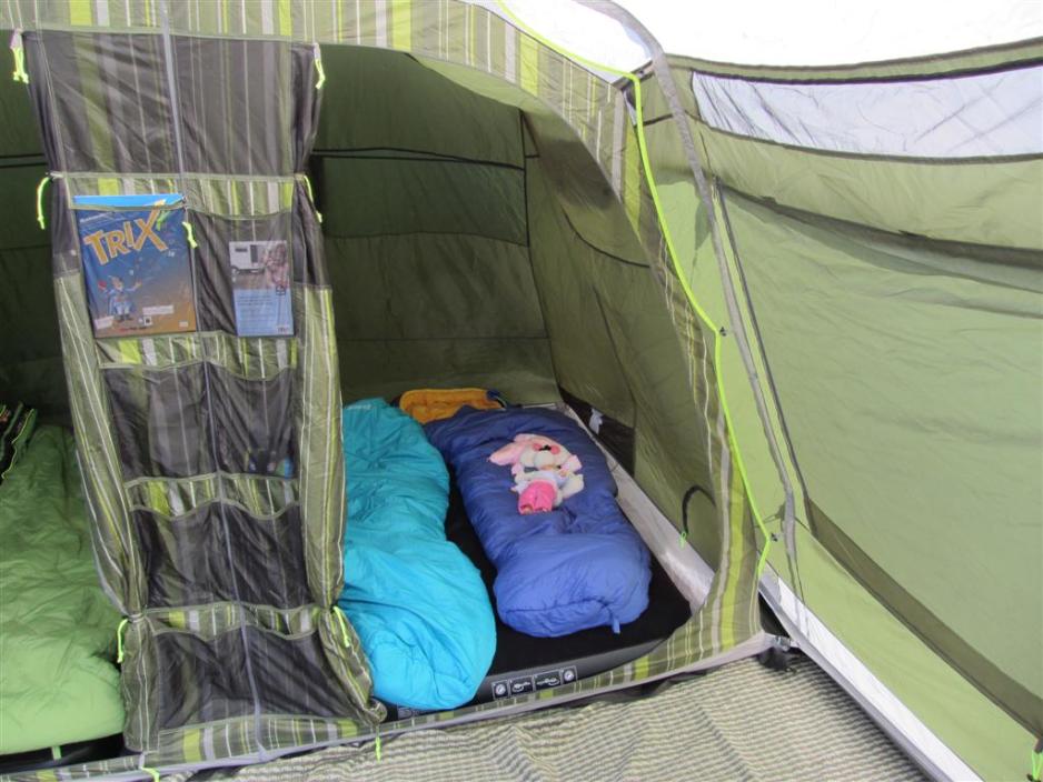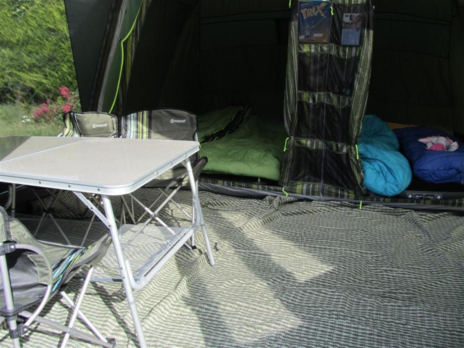 Outwell Ontario L er innredet med to separate sovekabiner og en stor kabin, der man kan spise. Man kan dra ned glidelåsen mellom de to kabinene, hvis man ønsker et stort rom i stedet for to.