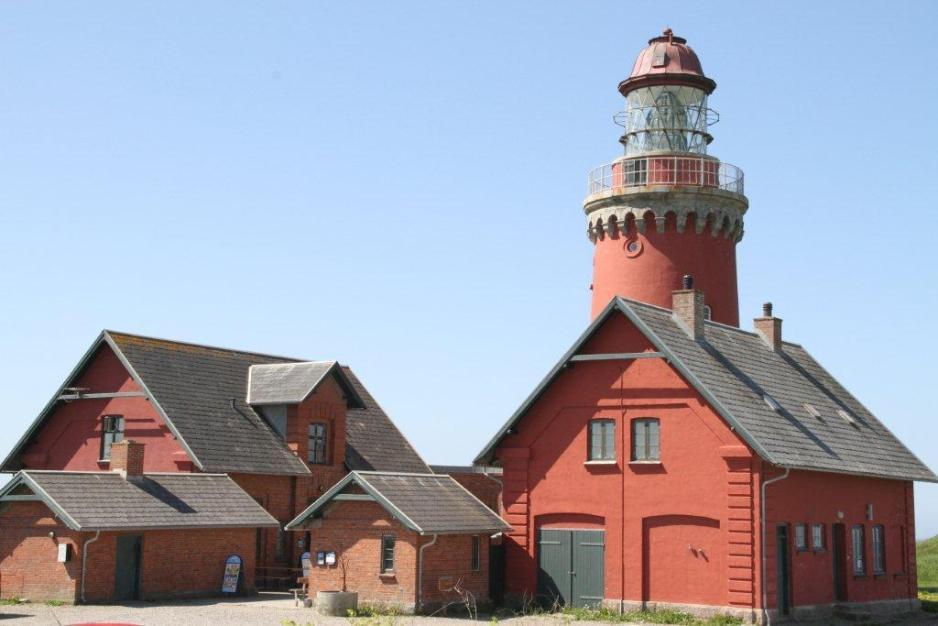 Den siste dagen kjører vi litt rundt i området, og på vei mot Lemvig får Line øye på et skilt der det står ”Bovbjerg Fyr.” Vi vender snuten mot vest og etter få kilometer reiser det seg et rødt fyrtårn ute i klittene. Det viser seg, at Bovbjerg Fyr er en kulturinstitusjon uten sidestykke. Fyret er oppført i 1877 og har fram til kort etter årtusenskiftet tilhørt staten. I dag drives det av et fond som hovedsaklig benytter frivillig arbeidskraft. Her er tallrike arrangementer gjennom hele året. I januar er det imidlertid stengt. Da fyret er plassert på en klint, er det i seg selv ikke spesielt høyt. Bare 24 meter rager det opp i luften. Nedenfra ser det ikke så voldsomt ut, men går man opp i tårnet, er 24 meter plutselig høyt – i hvert fall når man titter ned.Freja og jeg teller trinnene opp, og uten å avsløre antallet her, kan jeg godt røpe, at turen opp nok skal gi litt svette på pannen.