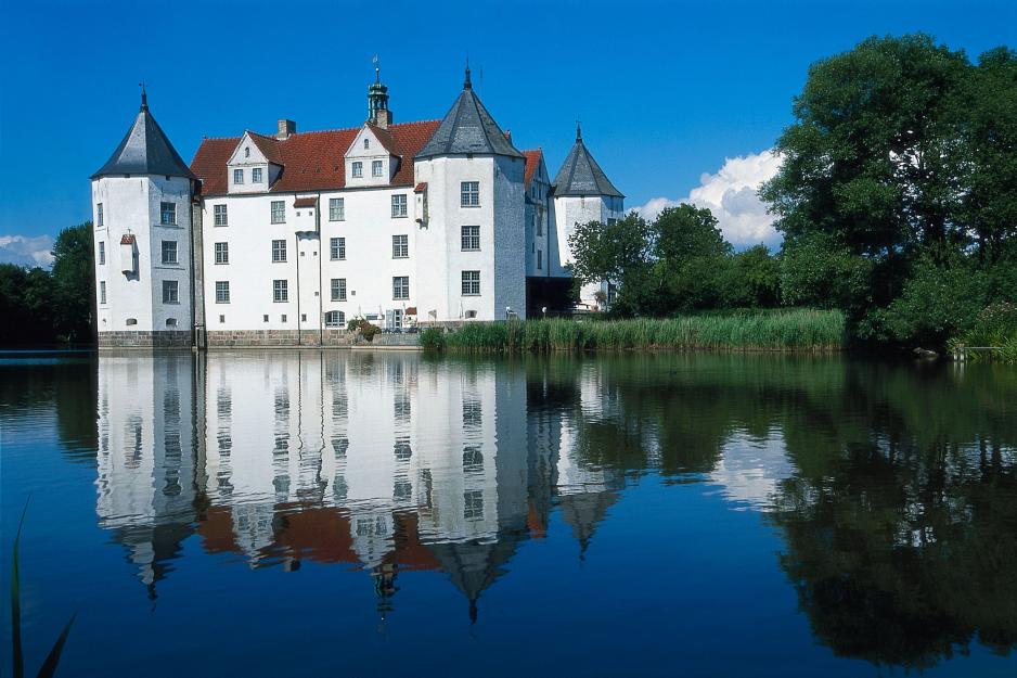Rett ved byen ligger Glücksburg slott i grønne omgivelser på halvøya Angeln. Slottet, som er åpent for publikum, var et av Frederik den Syvendes yndlingssteder, og han døde her i 1863. Det er herfra den glückburgske fyrsteslekt stammer, som i dag teller både det norske og danske kongehus. En båttur på fjorden med skipet M/S Viking, kan anbefales. Det er en flott tur der man kommer forbi Okseøyene, og det er mulighet til å handle tollfritt ombord. Skipet legger blant annet til ved Glücksborg slott.