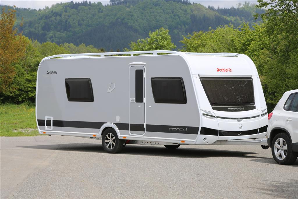 Nomad er det gedigne alternativet til Camper med mange av de samme grunnrissene. Det nye, i forhold til Camper noe mørkere, nøttefargede tredekoren Noce Padano er til 2014 kombinert med et nytt strukturlaminat og et mørkt gulvbelegg i fliselook. De brune trekkene i bomiljøet Magnolia med blomster‐/filigranmønster på ryggputene avrunder interiøret. Hvis man heller vil ha blå‐grå‐nyanser, kan man i stedet velge bomiljøet Concerto. Det finnes i alt 22 grunnriss i Nomad‐serien, som er den største i Dethleffs modellprogram. I 2014 er det tilkommet syv nye grunnriss. Fem av disse er de samme som de nevnte nye Camper‐planløsningene. I tillegg er det tilkommet ytterligere to nyheter.