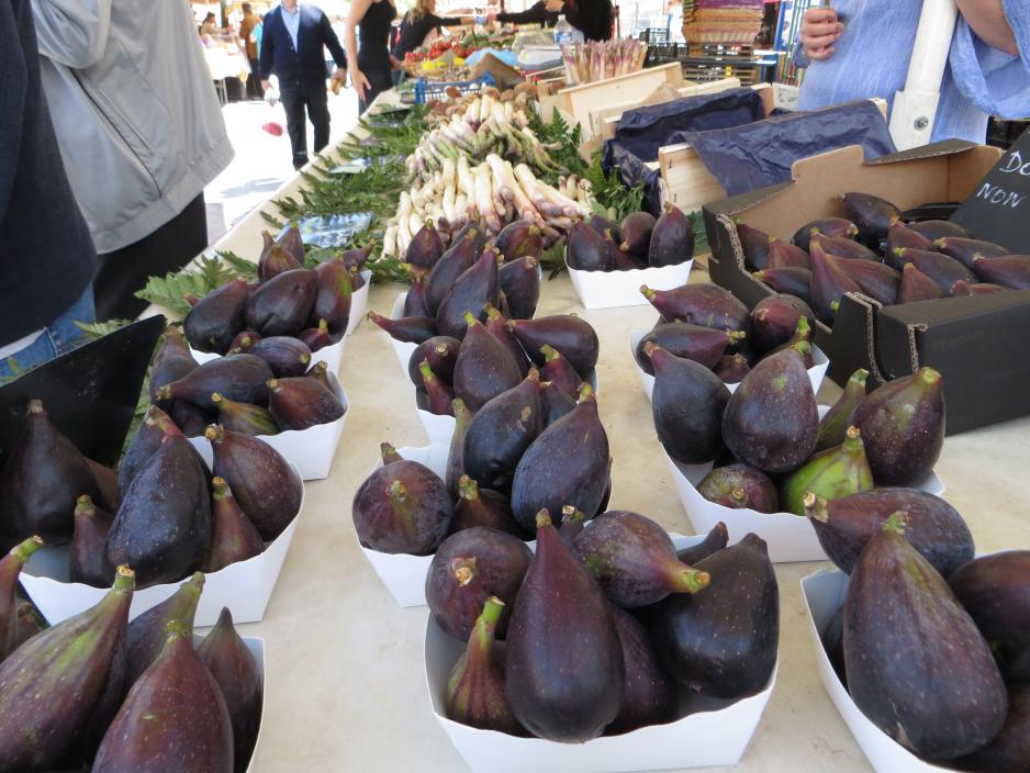 Markedet på Le Cours Saleya midt i den gamle bydelen er også kjent som blomstermarkedet og det er blomster der, men det er også mye annet. Det er et sant eldorado, når det kommer til fersk frukt, grønnsaker, pølser og ost. Jeg skulle ønske at tilgangen til frukt og grønt var på samme nivå her hjemme. Her kan man lukte og smake og velge ut nøyaktig det eplet eller den agurken man gjerne vil ha med hjem.