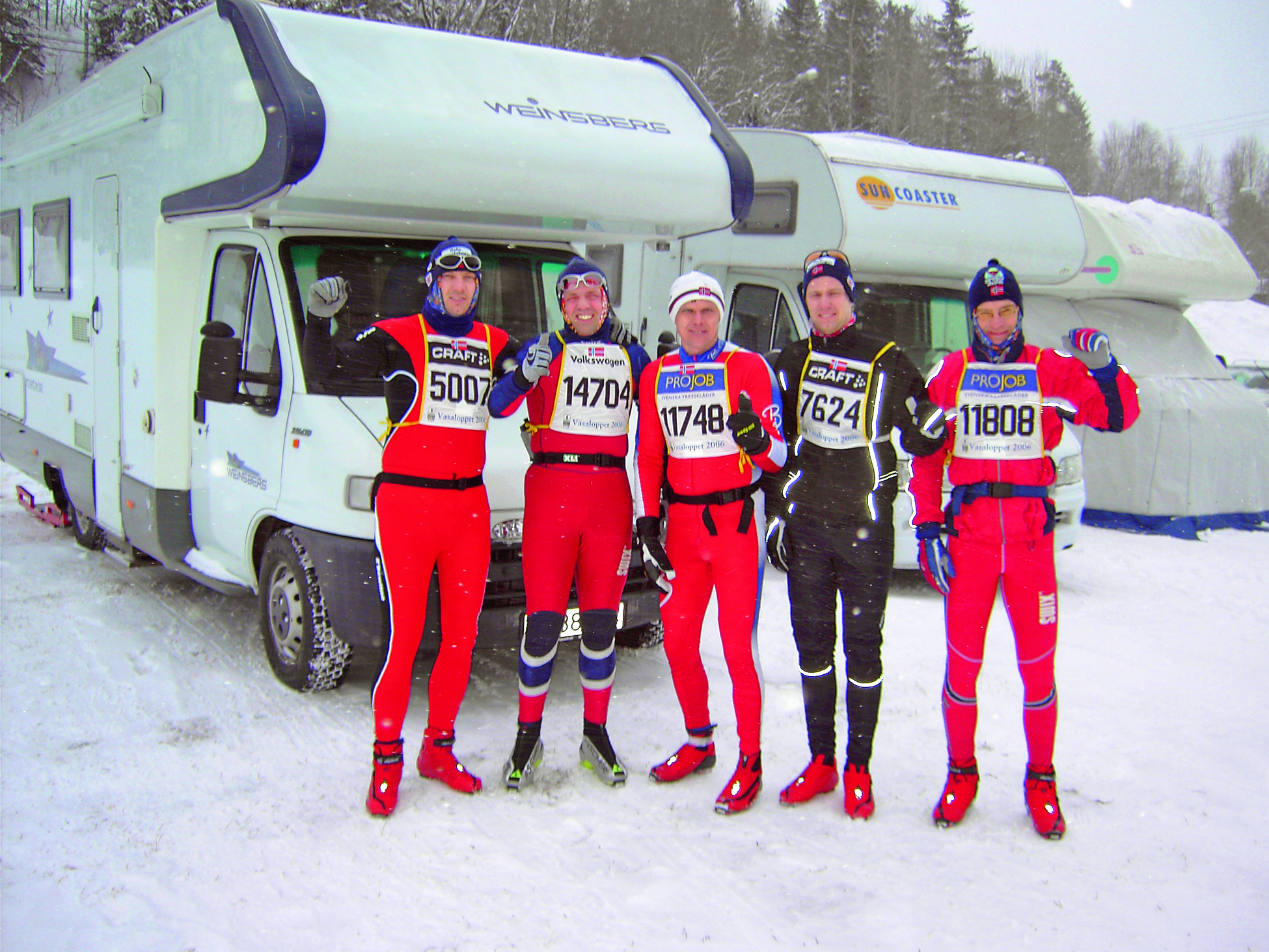De første par årene gjengen deltok på tradisjonelle turrenn, bodde de i hytter i nærheten av rennstedet. Ganske raskt forstod de at de trengte et annet boalternativ for å slippe kø og kaos når de skulle forberede seg til skirenn. Med så mange tusen på start som i f.eks Vasaloppet, blir det fort stressende og utrivelig når så mange skal forberede seg til rennstart.Det tok ikke lang tid før de fant ut at bobil er et flott alternativ både for å ta seg til de ulike rennene, men også for å bo i under de siste forberedelsene til rennet. Guttene plasserer da gjerne bobilen så nært start som mulig. En sjåfør flytter så bilen til målområdet. Det er veldig komfortabelt å ha en egen bobil med tørre klær rett ved målgang etter flere timer på ski.Fra 2006 og frem til i dag, har gjengen brukt bobil under Vasaloppet i Sverige. De har enten leid via bobilforhandler eller via privatpersoner.