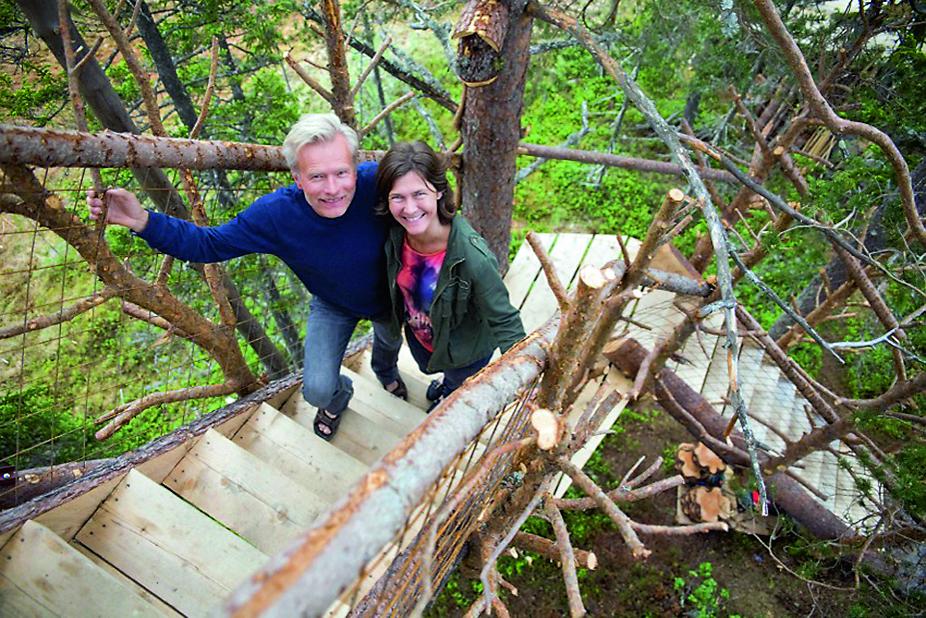 Det har vært mye medieomtale, og ryktene sprer seg fort om de unike hyttene. Norske nasjonale medier er en ting, men også internasjonale magasiner og reisekanaler ønsker å fortelle om naturopplevelsen under norske tretopper.– Hvordan takler dere all interessen?– Det er ekstremt stor pågang, jeg tror vi kommer til å ende på tilnærmet 100 prosent belegg på de fire hyttene i år, sier Frode Schei som har som hovedmål å skape trygg spenning.– I dagens samfunn er det viktig å gjøre naturen tilgjengelig for alle, sier Frode Schei.– Vi har en rammetillatelse på fem hytter. Vi har bygd fire, så nå tror jeg vi skal gå litt i tenkeboksen før vi går videre, sier Schei. Underveis har han hatt god hjelp av samboer Ann-Mari Jahr.Det siste prosjektet er Himmelhytta som er mer luksuriøs med stor soveavdeling og meget velegnet til en romantisk tur.Det skal litt til å toppe dette!