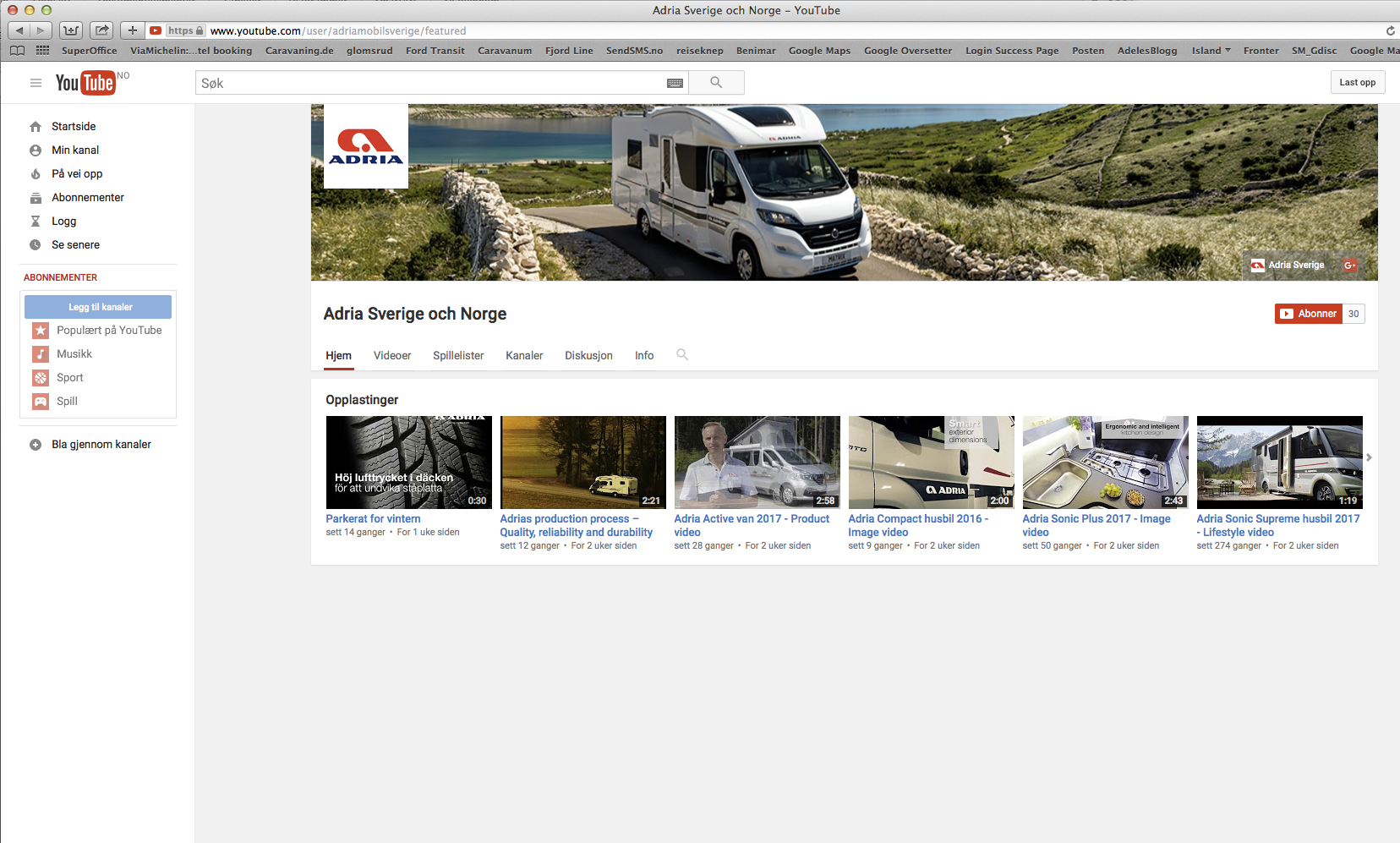 Adria er en av produsentene som satser aktivt på nye medier. Med sin egen YouTube-kanal for Norge og Sverige er det mye informasjon og inspirasjon å hente i produsentens videoer.