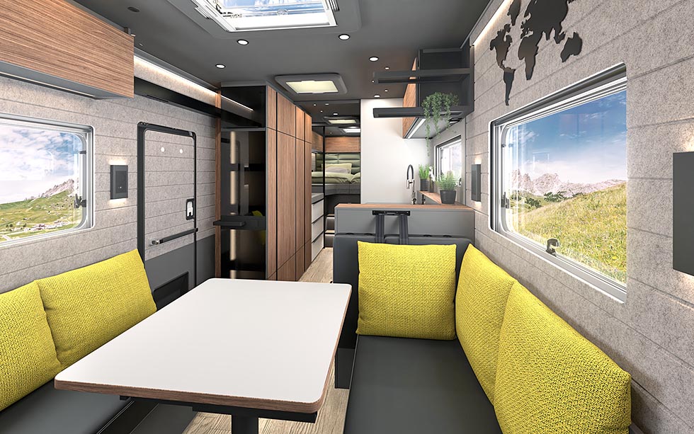Innvendig er Arto gjennomtenkt ned til minste detalj: veggkledningen av filt sørger for eksempel for koselig romatmosfære og naturlig akustikk. Åpne siktakser fra førerhuset til bakre soveområde og et intelligent lyskonsept med bevegelsessensorer skaper en behagelig velværeatmosfære. Kjøkkenet kan tilpasse seg behovene individuelt. Kan velges med stekeovn inkl. grill, mikrobølgeovn og oppvaskmaskin eller alternativt med et kompressor-kjøleskapskuff.