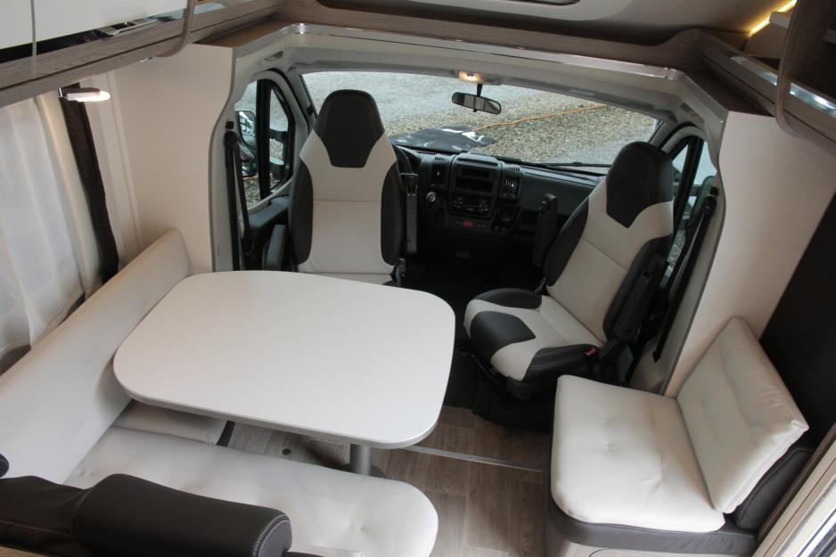 I vinter ble den integrerte versjonen av Trend lansert. Men det betyr ikke at utviklingen av serien er komplett. Nå supplerer Dethleffs serien med to nye interiørløsninger: 6767 og 7017. Begge løsningene leveres både som halvintegrert (T) og integrert (I), så i praksis snakker vi om fire nye Trend-modeller. Den førstnevnte har en utradisjonell interiørløsning, en enormt stor sittegruppe og et unikt lagringsrom på over 230 cm høyde. Noe for deg med surfebrett og mange gjester? 7017 har en løsning som er spesielt populær i Skandinavia: Lave enkeltsenger med tverrstilt bad bakerst. Dette interiøret gir tradisjonelt lite garasjeplass, det gjelder også løsningen til 7017, selv om den ikke er verst i klassen.