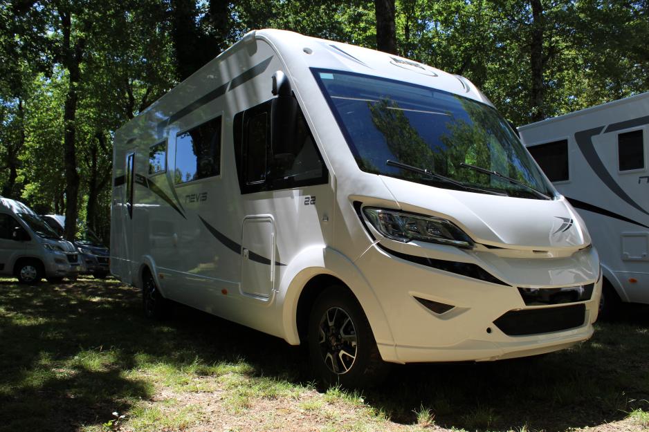 McLouis har i tillegg til modellene Glamys og Twid både en serie med halvintegrerte modeller under navnet MC4, hvor du finner hele 13 ulike planløsninger i tre forskjellige interiørutførelser, samt en helintegrert modell under navnet Nevis. Den sistnevnte er kanskje mest interessant for Norge og består av syv planløsninger, og også her kan du velge mellom tre ulike interiørkombinasjoner Gold, Diamond og Karat. Nevis 22 er registrert for seks personer og er 726 cm lang. Inngangsdøra er bak og her finner du også to køyesenger som kan justeres i høyden. Dette for en mer fleksibel garasje. Køyesengene måler 77x220 cm og har hvert sitt vindu. Badet har egen dusjnisje med foldedører og vindu. Speilskapet har skyvedør og toalettrullholderen er integrert i skapdøren. Kjøkkenet er av god størrelse med tre bluss og stålvask. Kjøleskapet er på 145 liter og fryser på 25 liter. Tre skuffer og et stort underskap gir god oppbevaring og effekt-belysningen under benken fungerer bra. Det som for øvrig imponerer mest i denne modellen er sittegruppa. Her kan du fint invitere mange av dine naboer over på kaffe for denne rommer 8-10 personer uten problemer. En sjeldent stor sittegruppe gir Nevis 22 en romfølelse du finner få andre steder. Senkesengen foran er fint integrert i taket og LED-belysningen er effektfull både over og under skap og i taket. Ved å re opp seng ved sittegruppen har du seks soveplasser i denne modellen som den norske importøren har stor tro på.