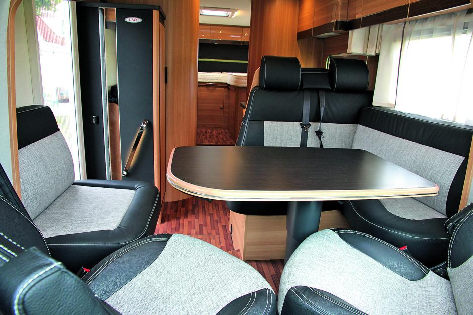 Det er innvendige trappetrinn i denne bilen, men disse var ikke skikkelig isolert. I praksis ga de derfor mye støy på grusvei, og ved regnvær. Dette løses enkelt med å lime på en gummimatte utvendig. Modellen leveres også med Alde vannbåren varme, og ender da opp med en pris på rundt en million kroner. Når LMC har såpass høye ambisjoner synes vi det er rart at de ikke også har spandert rammevinduer på denne bilen. I stedet er det benyttet utenpåliggende vinduer. En annen detalj som har forbedringspotensiale er hjørneskapene på soverommet. Disse har fastmonterte lokk som gjør at plassen ikke brukes. Det er også for lav høyde mellom sengene og overskapene - vi var flere som skallet hardt.