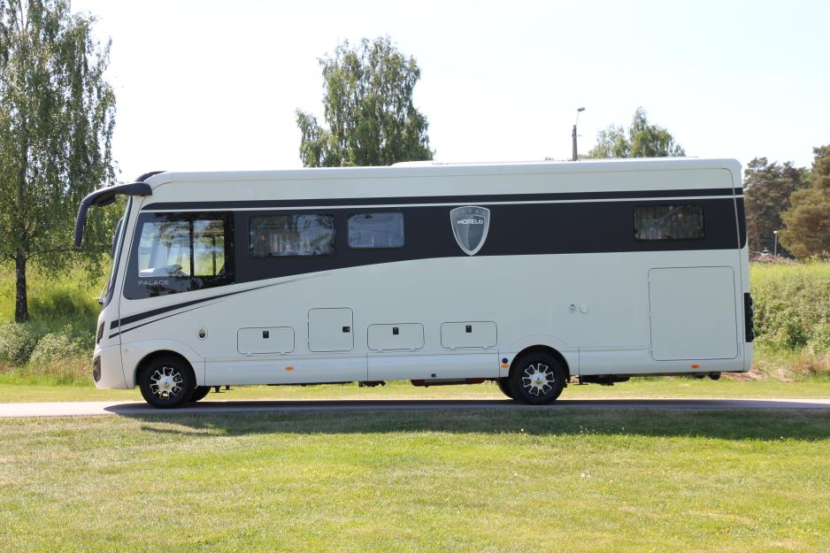 | Tekniske data Morelo Palace 90 LS Grunnpris: 2 460 000 kroner Vist bil: 3 352 000 kroner Basisbil: Iveco Daily Motor: 3 ltr. 180 hk Gir: 8 trinns automatgir Chassis : originalt, modifisert Akselavstand: 510 cm Utv. mål: 923 x 240 x h 344 cm Totalvekt: 7 490 kg Egenvekt kjøreklar: 5600 kg Nyttelast: 1890 kg Senger bak: 2 x 198 x 83 cm | Toalettrom: 220 x 200 cm Dusj: 75 x 85 x h 206 cm Kjøkkenbenk: 134 x 70 x h 90 cm Kjøleskap: Dometic RMDT 8555 190/35 ltr. + stekeovn Varme: Alde sentralvarme 5500 W Vannvarmer: Integrert Vanntank: 380 ltr. Spillvannstank: 250 ltr. Toalett: Dometic Toalettank: 250 ltr. Garasje: 226 x 140 x h 136 cm Bobatteri: 2 x 210 Ah Gel Reg. for: 4 personer Div: 5 vinduer, 6 takluker |