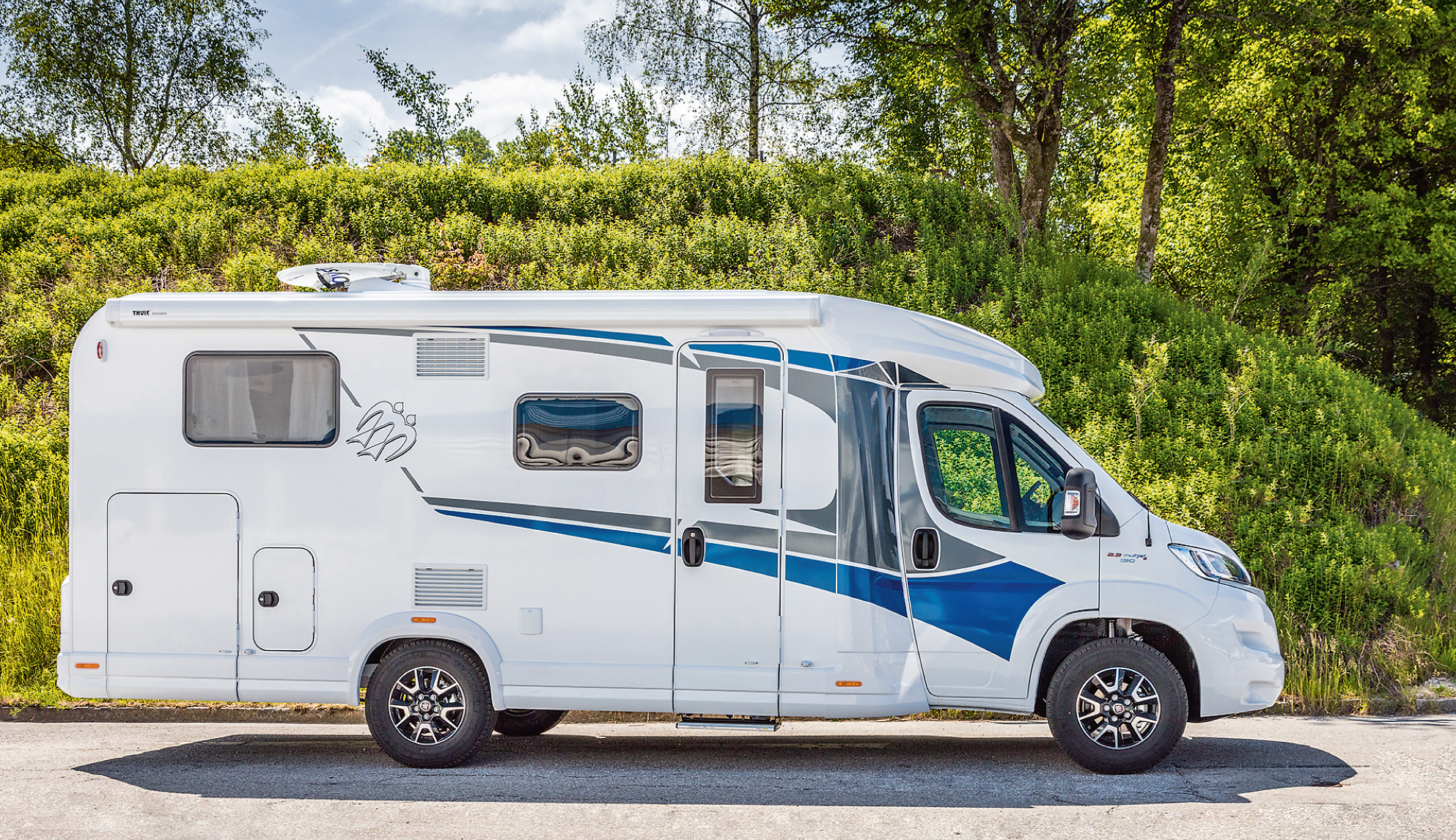 Bad Griesbach, Tyskland: Den nye serien er fra første stund tilgjengelig i tre versjoner: Live Traveller (alkove), Live TI (halvintegrert) og Live Wave (halvintegrert med senkeseng). Live er tydelig gjenkjennbar med sin enkle blå dekor, uten tant og fjas. Den er som standard bygget på et Fiat-chassis med en 130 HK-motor.