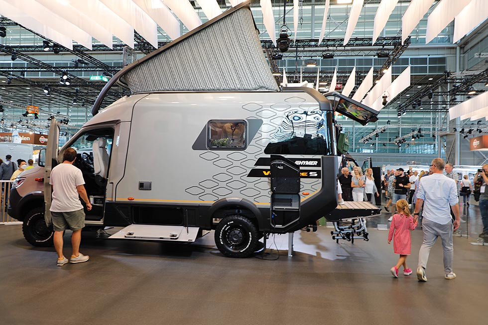 På Caravan Salon-messen kunngjorde Hymer at de vil serieprodusere testprosjektet fra 2019, Venture S. Modellen skiller seg fra tradisjonelle bobiler på flere måter: Uteplass og terrasse i to etasjer, integrert utekjøkken, innvendig fast trapp, og ikke minst spennnede materialer som normalt ikke finner veien til en bobil. Neste uke kan du selv sjekke ut "fremtidsbobilen".