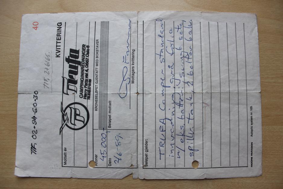 Innkjøpt av Jørn Smedhus 22. mars i 1989. Volkswagen Caravelle Combi 1985. Registrert første gang den 21.3.85 Motor: 78 HK Bensinmotor Innredet med Reimo innredning og hevetak av Trufa 21. juni 1989. Motoren var gått rundt 60 000 km da jeg kjøpte bilen i Drammen. Den første april i 1996 fikk originalmotoren rådelager-havari ved Halden. Bilen var da kjørt 225 000 km. VW i Halden skaffet og monterte en brukt motor fra Norsk Bildelsenter på Lier. Den monterte bruktmotoren gikk ikke pent og Smedhus var lite fornøyd men overtok og klaget muntlig. I april 1997 på vei til Eskilstuna ble det problemer med motoren, bilen hadde da gått 231 000 km. Mälarbil AB Eskilstuna tok ut og monterte motoren etter at den ble reparert kostnadsfritt hos Norsk Bildelsenter. Motoren gikk nå greit uten at Smedhus var helt fornøyd. Bilen gikk en tur opp og ned til Hellas pluss litt til, ca. 7000 km med denne motoren. Så hadde Smedhus et hyggelig møte med ledelsen i Norsk Bildelsenter hvor det endte med at han kjørte hjem med en topp nyrenovert motor i bagasjerommet. Denne ble innmontert sent høsten 1997. Bilen hadde da gått totalt 238 000 km. Høsten 2012 havarerte denne motoren. Bilen hadde da gått totalt 564 000 km. Bilen blir parkert i garasjen over vinteren og Smedhus forbereder seg på å kvitte seg med bilen. Annonsetekst til finn.no blir gjort klar, men han ombestemmer seg og tar ut motoren hjemme i garasjen. Av Unneberg Bil i Tønsberg får han kjøpt alt han trenger til sin gamle VW. Motoren får 4 nye ventilløftere på en side og på andre siden byttes noen tilsvarende som er slitte. Ødelagt stempel og ventil fjernes og erstattes med et brukt fra originalmotoren som har vært lagret i alle disse årene. Alle stempelringer erstattes med nye og andre, nyrenoverte topper monteres med nye pakninger. Motoren remonteres og starter umiddelbart og går fint uten ventilløfter-kakling. Bilen har nå gått 97 mil med denne motoren.