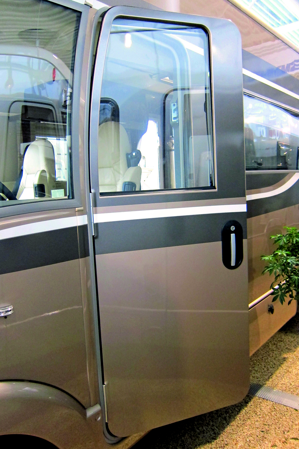 Denne førerdøren har ikke hengsel på øvre halvdel, kan lett gi lyd da den ikke tetter tilstrekkelig øverst.