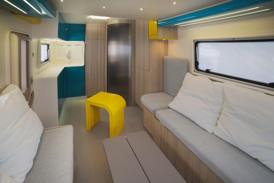 Modellen heter Triaca Concept 230, og er utviklet med dagens materialer og teknologi. Dette en interessant studie innenfor et tema som bobilbransjen blir nødt til å ha mer fokus på i fremtiden. I Italia har universitetet i Firenze, universitetet i Siena og to teknologiutviklingsselskaper i samarbeid med produsenten Roller Team etablert et utviklingsprosjekt. Prosjektet er finansiert av Toscana regionen, og gruppen har jobbet sammen siden 2012. Prosjektet har lagt vekt på å bruke løsninger som kan produseres umiddelbart. Og dette er teknologiene: Energiforbruket er redusert, både under bruk og i produksjonen av modellen. Det er gjort mange grep for å redusere totalt energi- og materialforbruk i løpet av produktets totale livsløp. En av sitteplassene kan konverteres til komfortabel liggestol med støtte for beina. Sittegruppen gjøres om til seng på en helt ny og elegant måte. Putene er fylt med polyuretan skum som gir lavt økologisk fotavtrykk og stoffene er laget med fibrer fra resirkulerte materialer. Elektrisk styrt pop-up tak med fjernkontroll. Her er det plass til en senkeseng. Induksjonskokeplater som også kan brukes ute. Badet på under en kvadratmeter benytter i stor grad utstyr som ikke er synlig når det ikke benyttes. Det gjelder for eksempel vasken som er formet som en skuff… Bilens display kan selvsagt styres fra en smarttelefon eller et nettbrett. Systemet gjør det også mulig å kontinuerlig overvåke forbruket.