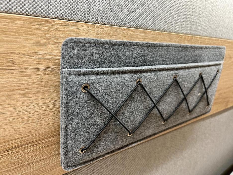 Innvendig byr Xtura på et spesielt lyst og vennlige interiør. Det skyldes ikke minst alle naturmaterialene som er benyttet innvendig. Her er det inge sterile og glatte flater, men kun naturmaterialer. Filtkledde vegger, filttasker, svart kjøkkenarmatur integrerte håndkleholdere er noen av detlajene. Eura Mobil kaller interiørstilen Chalet-eik. Den vannbårne varmen har også slynger i gulvet. Det gir komfort og understreker at dette er en helårsbil.