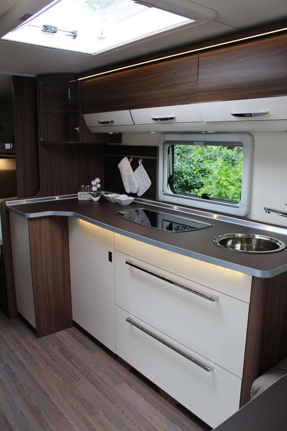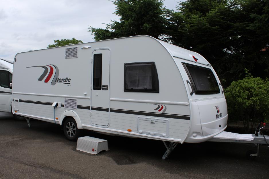 Er du glad i å lage mat på tur vil du trives med Nordic 580 TS. Det første som slår oss når vi kommer inn i vogna, er det fantastiske kjøkkenet. Arbeidsbenken er av det virkelig store slaget. Dometic kjøleskapet er på 160 liter og fryser på 30 liter. Over kjøleskapet er stekeovnen. Det er bra med skapplass og kjøkken innbyr virkelig til matlaging. Badet er av god størrelse med en dusjløsning i midten. Det er et hengeskap og høyskap med hyller til klær. Over dobbeltsengen er det mulig å slå ned en ekstra køyeseng dersom man har med seg et barn eller barnebarn (60 kg maksimal vekt). Vognen har effektfull LED-belysning i taket og under overskapene. Sittegruppen er romslig og byr på plass til flere av dine naboer på campingplassen. Fargevalget går i beige og brunt i kombinasjon med lyse farger på skapdørene, noe som gir et moderne men konservativt uttrykk. Rett innenfør døren finner du sammen smarte høyskap som på 600-modellen. Les mer om vår test av Nordic-serien i utgave 7-2015. Prisene i Norge på Nordic-serien starter på rundt 315 000 kroner. Det er også mulig å få Nordic levert med Alde, som tilleggsutstyr.