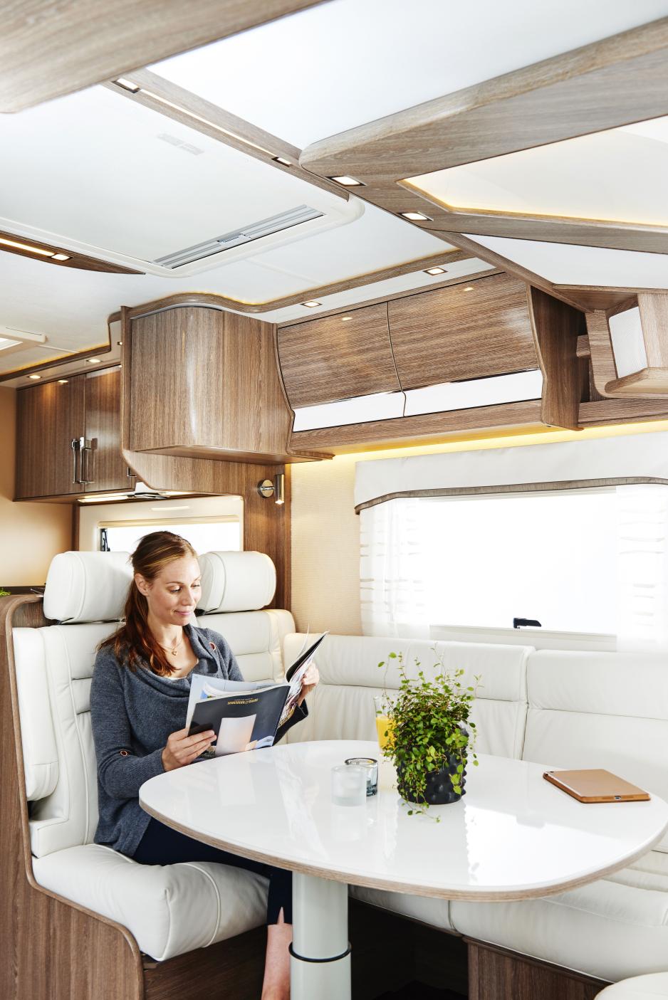 Men Kabe legger ikke ned krefter og utvikling kun på nye modeller. En annen endring er at dinetten i alle modellseriene har en L-formet sofa med et vendbart selvbærende søylebord. Med slide out-funksjon på sofaen ved belteplassen kan man på en enkel måte regulere hellingen på sitte- og ryggputen. Og med det utfellbare armlenet sitter man ekstra deilig i baksetet, forteller Kabe i en pressemelding. Samtlige helintegrerte biler får også nye doble sidevinduer i førerdelen, disse skal isolere enda bedre mot både kulde og lyd.
