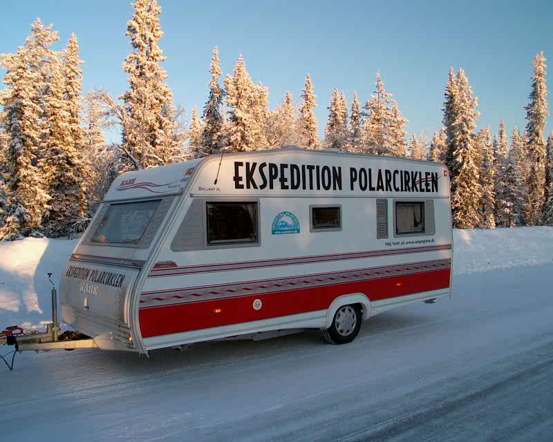 Vinteren 2001 kjørte de to danske caravanister den lange turen fra den finsk-russiske grensen i øst til Norskehavet i vest. Hele veien så nær opptil Polarsirkelen som mulig, og hele veien i en campingvogn, i løpet av en kald vinter med ned til 34 minusgrader.