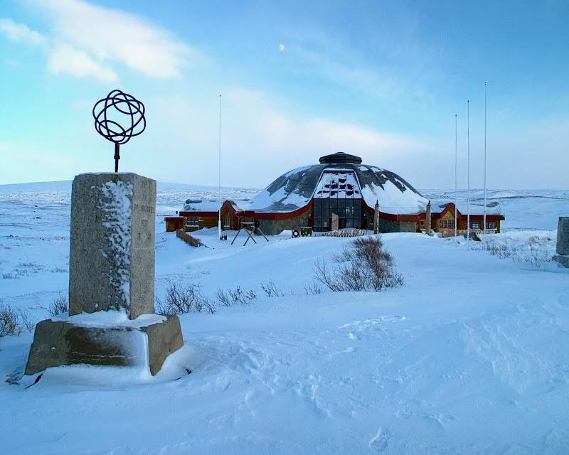 Vi fortsatte mot vest og nærmet oss den norske grensen og de høye fjell. Nå skulle det bli spennende hvordan det ville gå over Saltfjellet, som var vår eneste fjellovergang på selve ruten. Været var nesten det eneste, som kunne gå oss i mot. Campingvognen og bilen fungerte optimalt, og det var høy stemning i leiren. Hellet er med oss. Vi våkner opp til en av de vakreste dagene på turen. Helt frostklar blå himmel troner over ubeskrivelige snekledte fjell. Hvilken natur. Det er en fryd for øyet og balsam for sjelen å la seg transportere gjennom dette imponerende vinterlandskap, som er en stor kontrast til de mange kilometer gjennom skog, skog og atter skog i Finland og Sverige. Det er ikke mye snø i Norge og veien (E6) er nesten snø- og isfri. Polarsirkel Centeret er stengt om vinteren, men vi stopper likevel og strekker på bena, og nyter naturen på nært hold.
