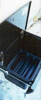 Sittegruppen er som tidligere nevnt bra for fire, men ikke flere. Bredden er 97 cm og kan utvides ved omgjøring til seng ( 183 x 122 cm). Bordet syntes vi var i smaleste laget ( 58 x 93 cm). Hele den fremre benken kan benyttes til bagasje, gjennom en luke kommer du ned til batteriet som ligger under gulvet. Den bakre benken inneholder vanntanken (120 ltr.). Hymer har i all tid sverget til senkepumper ( istedenfor trykkpumper). De har fått produsenten Reich til å ta frem en spesialutgave, en såkalt tandempumpe, en dobbel senkepumpe med god kapasitet. Over sittegruppen har Hymer plassert sin store takluke. To mindre luker finnes over sengen bak og i dusjen. Garderobeskapet (56 x 53 x h 153cm) har lys, lufteventil i tak og hylle på undersiden. Hymer kan møbler. Selv om møblene i Hymers dyrere modeller er mer sofistikerte enn disse, står dette på ingen måte tilbake for andre bobiler. Vi liker Hymers skapdørlåser og at det faktisk er treverk vi ser mange steder. Mellom overskapene over sengen bak og sittegruppen er det et TV skap.