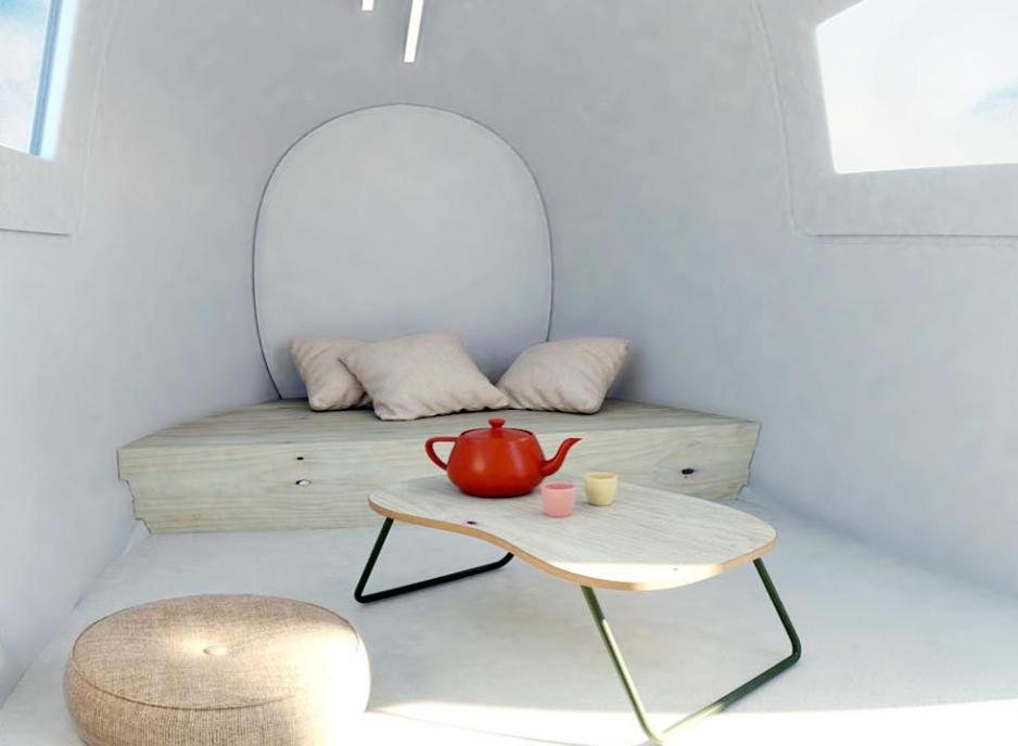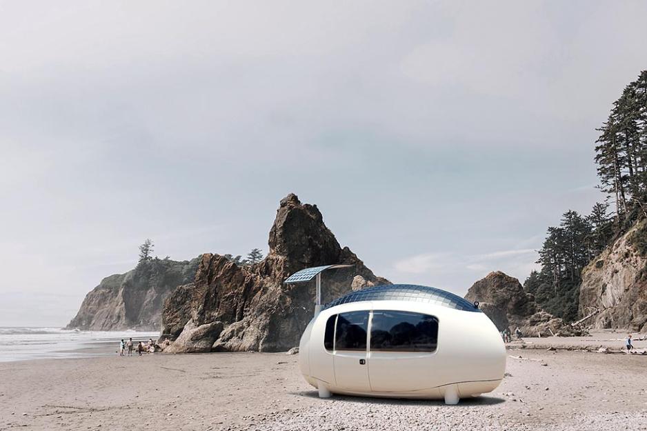 Det slovakiske selskapet som står bak denne ufo-lignende hytta, kaller produktet Ecocapsule. Selskapet vurderer videre å utstyre modellen Space med et understell på hjul – slik at man plutselig har en meget moderne utseende campingvogn. Prisen på drøyt 500 000 kroner tilsier at dette ikke blir et volumprodukt, men det er neppe det produsenten var ute etter da de designet det de kaller en «kapsel». Space er en såkalt mikroenhet, designet som et gigantisk egg.
