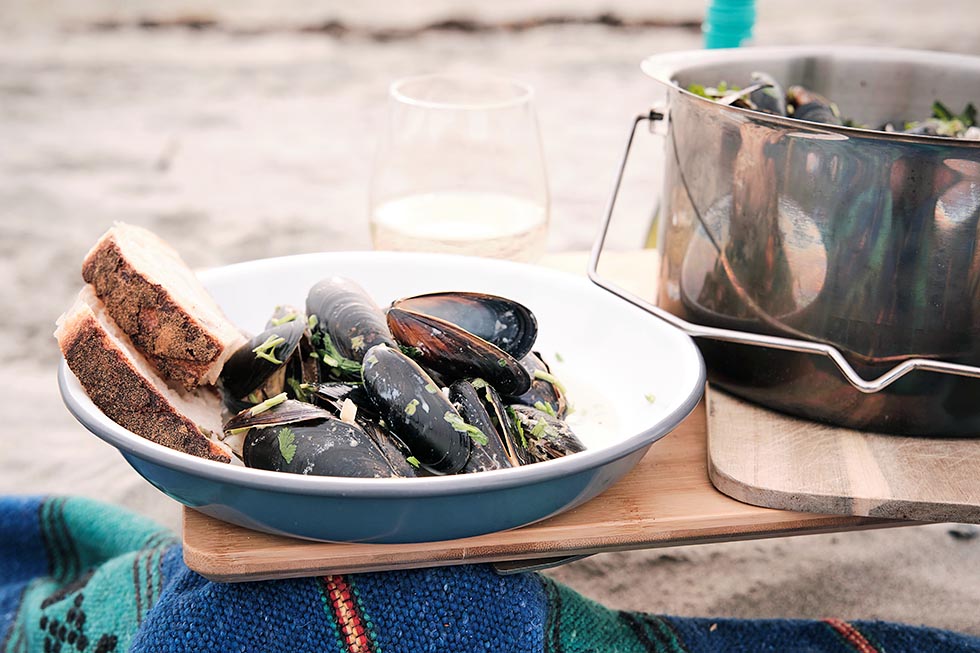 Norge er velsignet med en utrolig lang kystlinje. Den gir oss muligheten til å høste vår egen middag langs sjøen. Mannen min og jeg har en spesiell forkjærlighet for å campe ved sjøen, og en av våre favorittplasser ligger like utenfor Trondheim. Her kan vi parkere så nær vannet at det bare er et par skritt til stranden. Og her vokser det blåskjell i overflod, til tider en liten irritasjon når du skal bade, men perfekt når sulten melder seg.