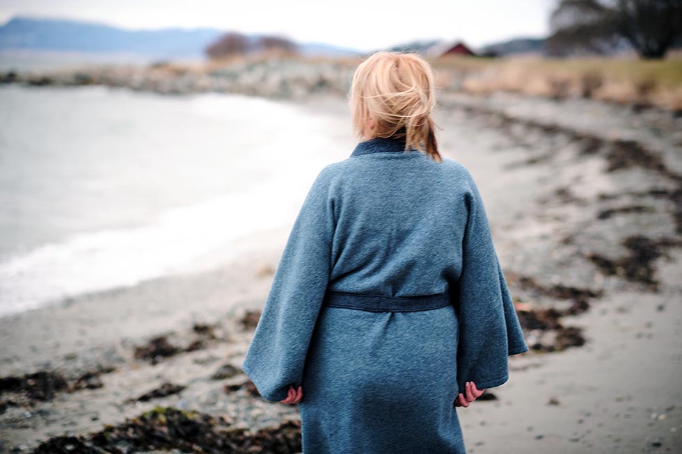 Det kan være kaldt å løpe mellom bobil og toalettet på en kjølig sommermorgen. For ikke å snakke om du, som meg, elsker å starte dagen med et forfriskende bad. En hjemmelaget morgenkåpe i ull er både praktisk og varmer godt.