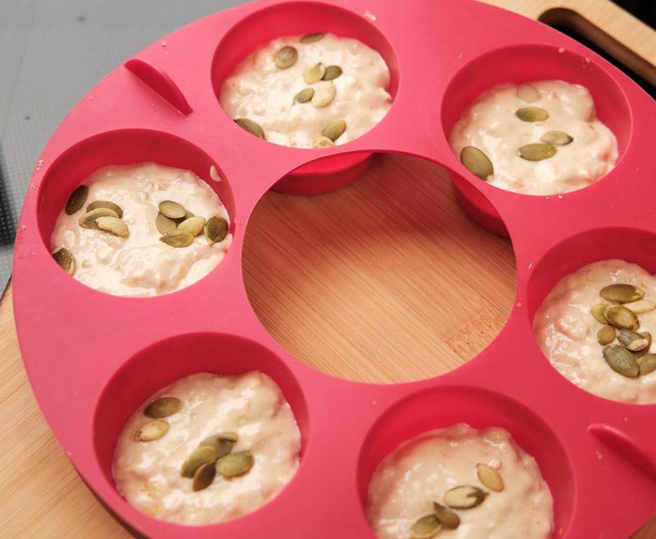 I forbindelse med denne praktiske testen fikk jeg tilsendt masse ekstrautstyr som passer til Omnia. Av dette lærte jeg meg å virkelig sette pris på muffinsformene og serveringsbrettet. Muffins er genialt, du kan lage muffins i alle mulige varianter og smaker. Hvorfor ikke sunne muffins som frokost, og søte muffins som dessert? Serveringsbrettet gjør det lett å plassere og servere direkte fra den varme kjelen.
