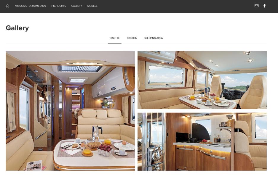 Det første er Produktområde er delen som er dedikert til Laika-serien, for å lære mer om våre kjøretøy, fordelt på type og rekkevidde. Høydepunkter, interiøroversikter, datablad (nedlastbar PDF) og et omfattende galleri er gitt for hver modell. Å velge bobilen i dine drømmer blir enklere enn noensinne!