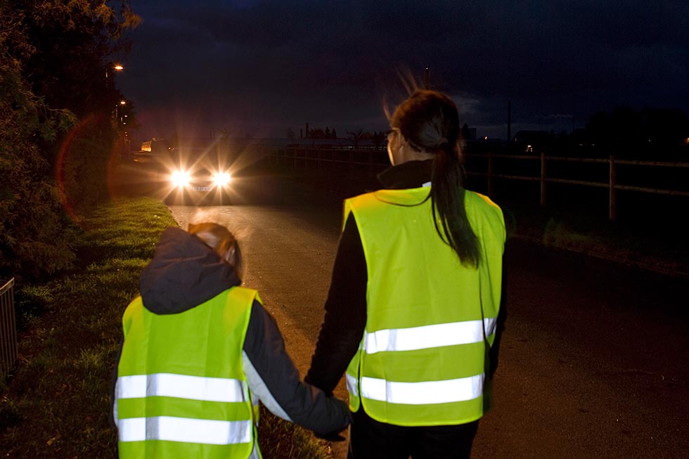 Refleks synes best når den beveger seg. Fest refleks på armer og bein.