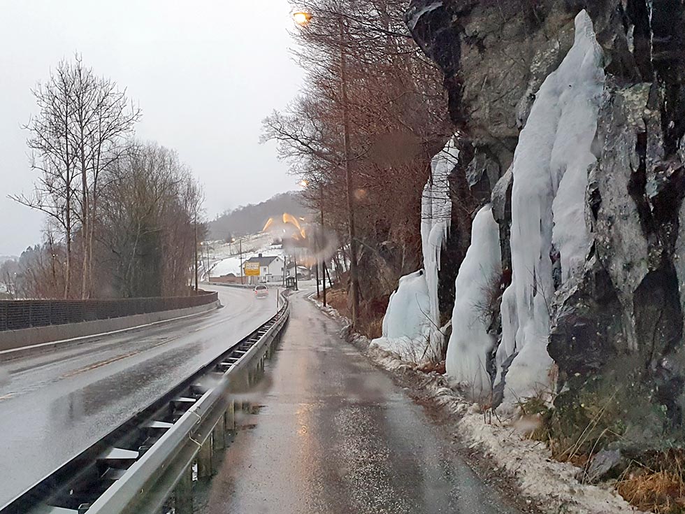 Entreprenører fra Statens vegvesen har stor oppmerksomhet på dette problemet, og prøver å få fjernet på de mest utsatte plassene. Men selv om det arbeides hardt med å begrense nedfall klarer de ikke å være overalt, så folk - og spesielt barn - bes om å utvise varsomhet, og å ikke oppholde seg unødvendig i områder hvor det er mye is på fjellsidene.