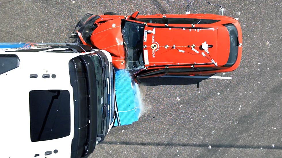 Testen var basert på en moderne personbil og tung lastebil som krasjet i hastigheter som ville resultere i en dødsulykke. Kollisjonstesten ble kjørt i 50 kilometer i timen, men simulerer en opprinnelig kjørehastighet på 80 som reduseres med 30 kilometer i timen av automatiske nødbremsesystemer (AEB) som kreves i nyere biler og lastebiler.