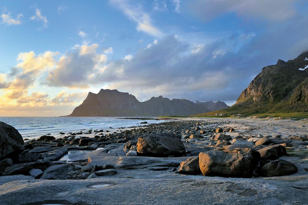 Utakleiv på yttersida av Vestvågøya, sideveg fra Nasjonal turistveg Lofoten. Foto: Steinar Skaar