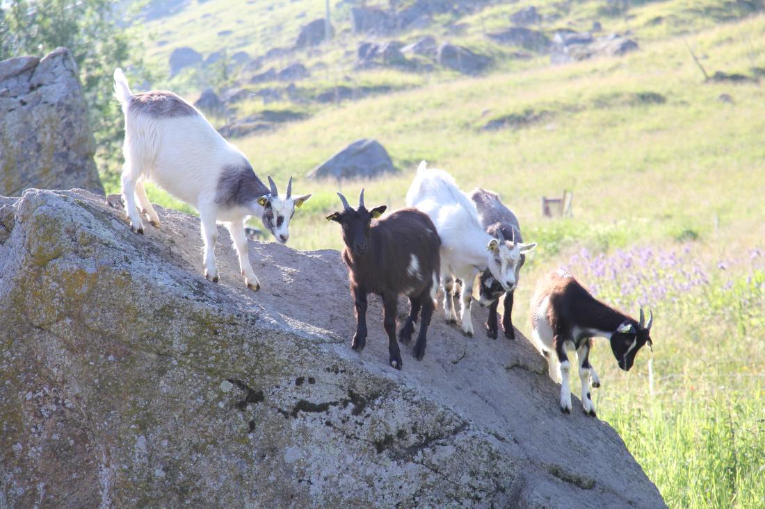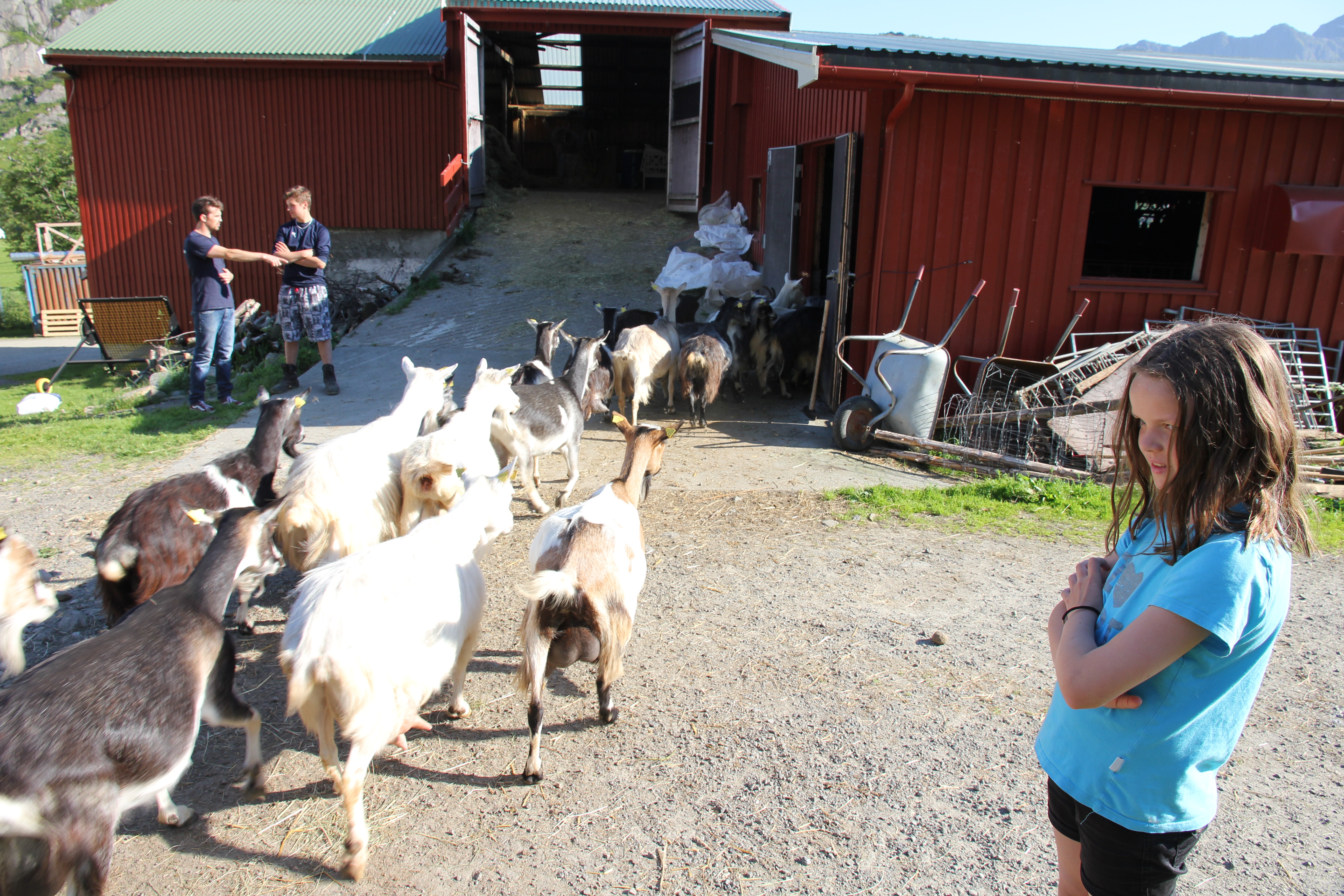 Fjellsiden er bratt, og spesielt god plass til bobilen er det ikke, men vi var heldige å få med oss innsamlingen av geitene for kvelden. På raske, sikre føtter strømmer de ned fra fjellsidene og inn i fjøset.