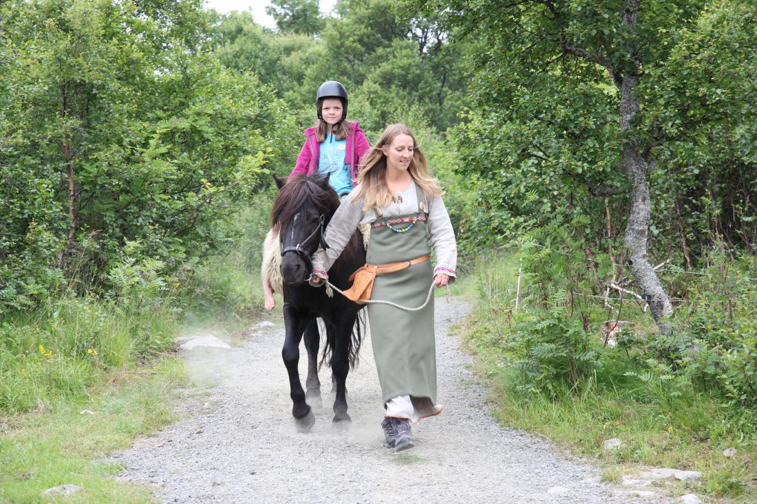 Ved å følge en middels godt merket sti ned til vannet i én kilometer kommer du først til tautrekkingskonkurransen. Her er det også en liten kiosk, du kan ri på en fjording og det er muligheter for å skyte med pil og bue. Det siste slo veldig godt an, for alle aldre.