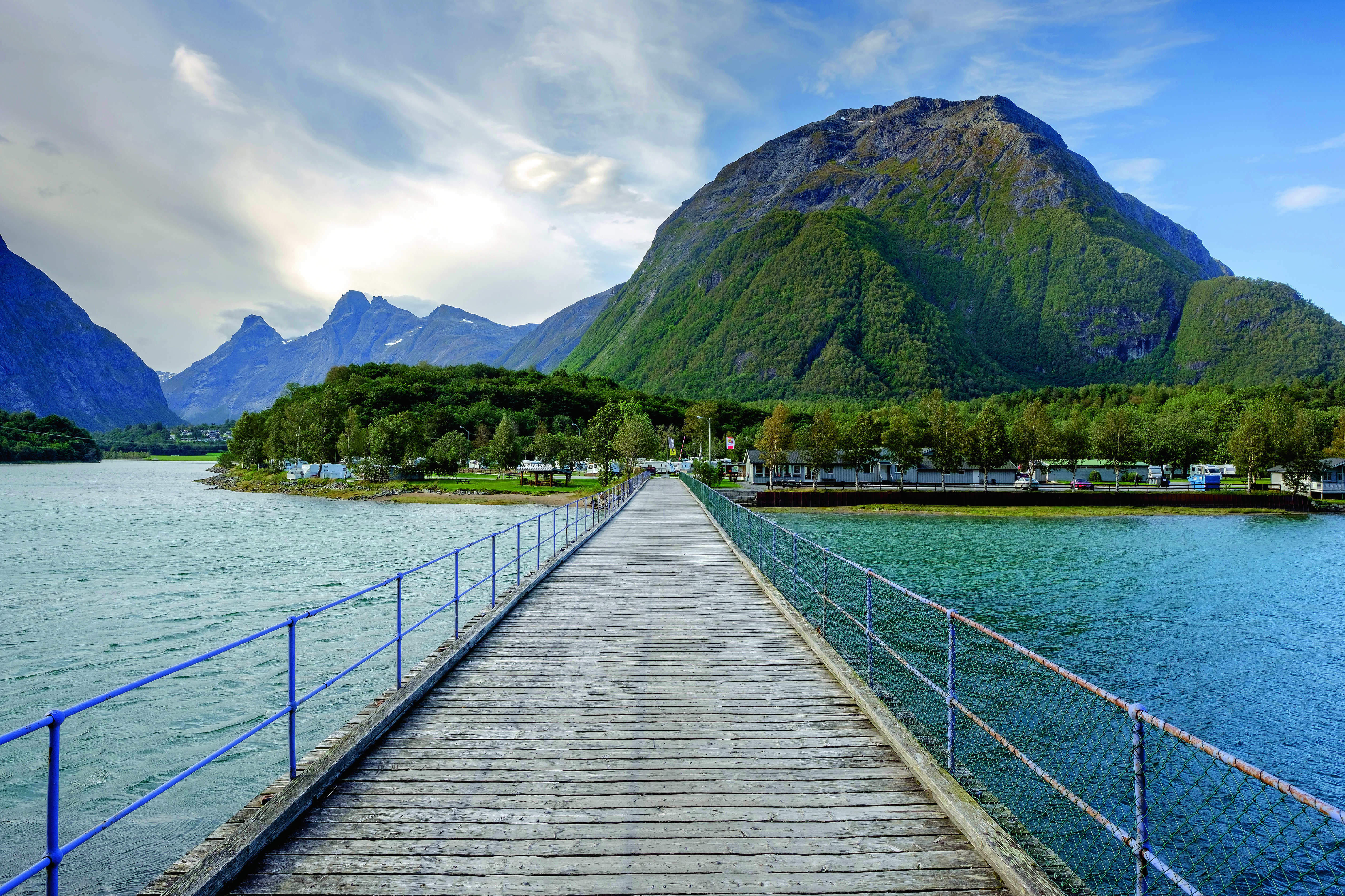 Tindehovedstaden Åndalsnes ligger klemt mellom fjell og fjord og er et fint utgangspunkt for turer til fots eller utflukter med bobilen.