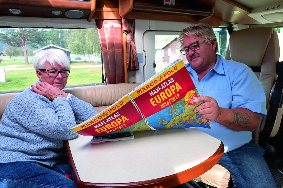 Rune og Hanne Sannes ønsker å oppleve mer av Norge og norsk natur etter mange reiser rundt i Europa. Ekteparet er tilhengere av å bruke et godt veikart, for ikke å bli lurt på ville veier av GPS.