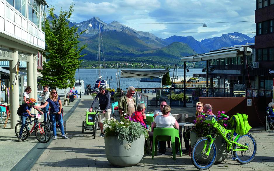 Her i Åndalsnes er det fint å få brukt sykkelen. Fra campingplassen er det to- tre kilometer inn til sentrum. Vi har rimelige el-sykler, 6000 kroner for hver - og vi er kjempefornøyde. De har en rekkevidde på fem kilometer, og det er nok for oss. Uten syklene hadde vi nok blitt sittende ved bilen, men nå er det enkelt på komme seg av gårde på turer i nærområdet, forteller ekteparet Sannes fornøyd.