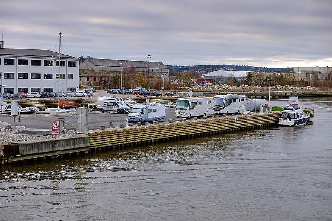 Bobilene kan parkeres helt ved bryggekanten. Så langt er det 10 plasser med strøm, men det kan utvides etter behov.