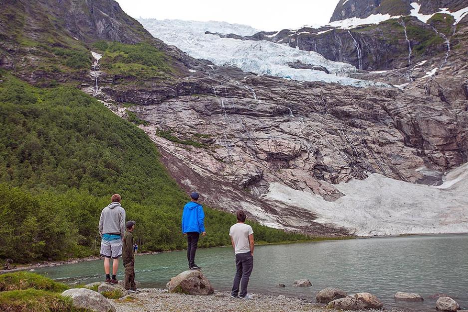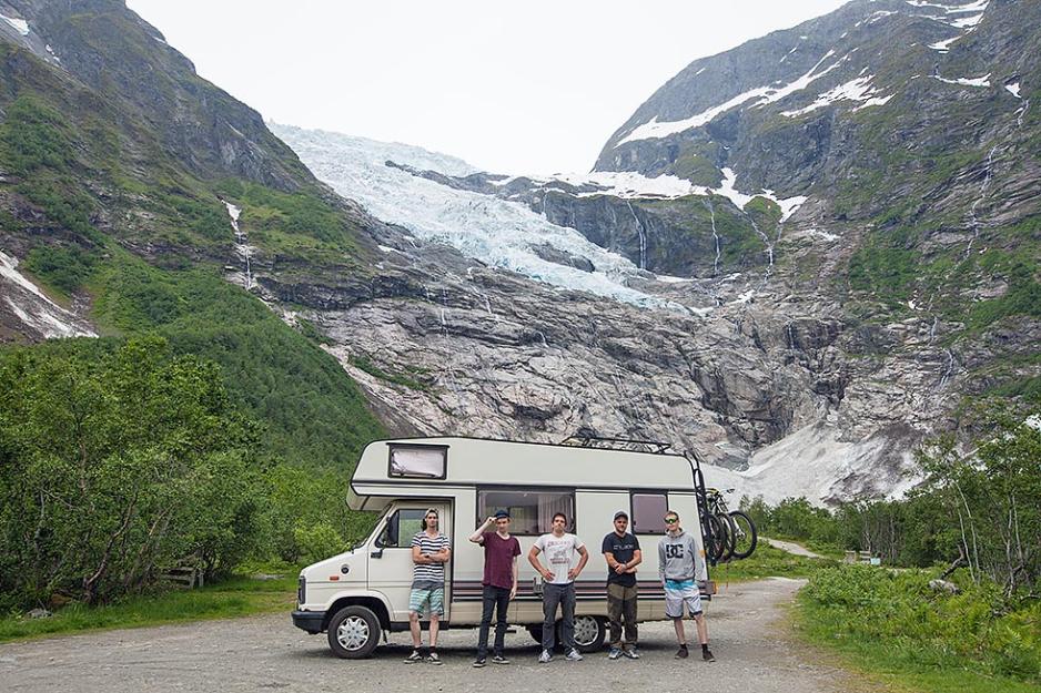 Det værharde Stadtlandet stod for tur. Ytterpunktet på Vestlandet hvor historier om skip i havsnød og hardføre fiskere har sitt opphav. Hoddevik hørtes ut som et trivelig sted, hvor kombinasjonen mellom unikt landskap og muligheten for å ri Nordsjøens dønninger på surfebrett fristet. På veien dit lå en uventet og majestetisk isbre kilt mellom fjellene. Jostedalsbreen. Den veldige formasjonen preget av tidens tann krevde nærmere inspeksjon. Breen ruvet over oss som et manifest på jordas livsløp, et bevis på hvor kort et menneskeliv er. Vi innså at det snart var over, hvor fort vi skal forgå. Vi følte oss ubetydelige i møte med kolossen. Den gav oss feil perspektiv, lærte oss ting vi ikke ville vite, tappet vår ungdommelige tæl. Vi flyktet.