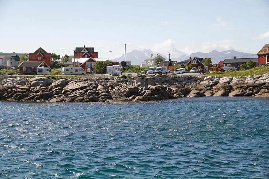 Kjøreturen ut til Henningsvær var en nesten like stor opplevelse som selve bygda. Med svingete veier, bratte skrenter og turkist, klart vann var det spektakulær utsikt rundt hver eneste sving. Vi parkerte bilen på parkeringsplassen ved ankomsten til bygda, blant flere andre bobiler.