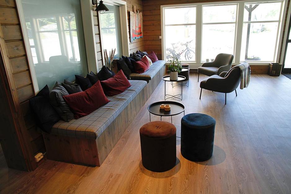Campingområdet og bygningene bærer preg av godt gjennomført oppussing, med friskt interiør og store vinduer med flott utsikt. Det er tydelig at eierne har lagt ned mye arbeid i plassen. Vi satte spesielt pris på resepsjonen og restauranten med interessant kunst på veggene og komfortable møbler. En fasilitet som fortjener litt ekstra omtale, er stampen og badstuen, som ligger helt på spissen av holmen. Her er det mulighet å leie ferdig oppfyrt stamp og badstue. Utsikten herfra er fantastisk: Hav og fjell på sommerstid, og – om man er heldig – nordlys om vinteren.