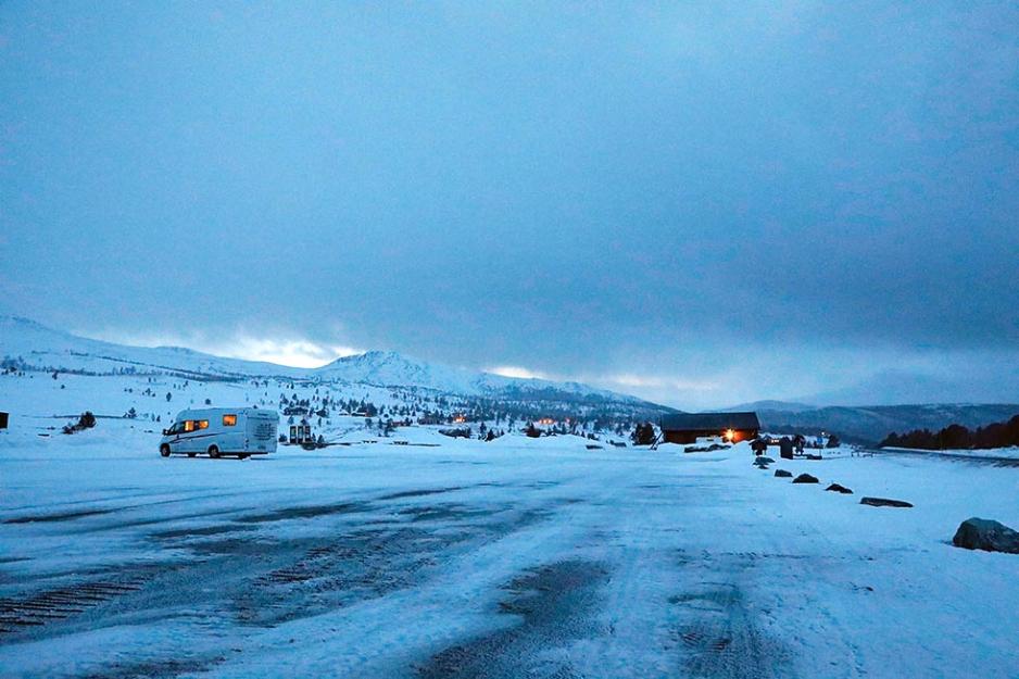 Ved fjellbygda Høvringen er det mulig å overnatte på Høvringen Camping. Vi var på vei dit, men måtte snu i bunnen av den siste bakken fordi den var dekket av snø, også en del løssnø. Vi parkerte og overnattet på områdets store fellesparkering. Du ser plassen på høyre hånd straks du er oppe. Det er betaling, men svært rimelig her. Det var ikke noe dårlig utgangspunkt. Vi var nesten alene der. Herfra kan man spenne på seg skiene, og ta for seg av de rundt 150 kilometer med langrennsløyper i området. Er du sporty kan du gå mot landets høyeste langrennsløype fra parkeringsplassen til Formokampen som ligger 1428 meter over havet. På toppen er det siktskive, og i klarvær kan du peke deg ut topper både i Dovrefjell, Jotunheimen og Rondane!