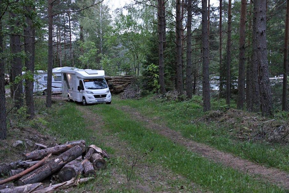 Det var langhelg og vi hadde det ikke travelt. Vi hadde nettopp lagt et besøk i Dyreparken bak oss, og vi nøt den rolige kontrasten på de smale og rolige landeveiene. Når vi har god tid, liker vi å finne en plass for natten før det blir for sent. Som sagt, så gjort. Med bobilene parkert var det bare for store og små å komme seg ut og oppdage nærområdet. Vi fikk med oss detaljer og opplevelser blant trærne, mellom blomster, fugler og ekorn. Men høydepunktet kom ikke før det ble skumring. I løpet av dagen hadde vi sett spor etter bevere flere steder. Store trær var felt av de flittige dyrene.