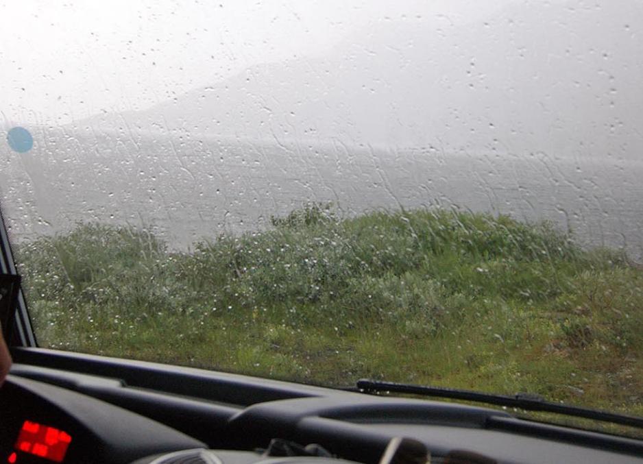 Etterhvert som dagene går, med akkurat så skiftende vær og vind som fjellet alltid byr på, setter vi mer og mer pris på komforten vi har. Når regnet virkelig pisker, og det lyner og tordner utenfor og vi tror at fjellene er i ferd med å revne - ja, da er det bare ekstra koselig. Tanken på å vende nesa hjemover er ikke engang tilstede. Vi har med oss nok t-lys, varmen er på i bilen, vi har mer lesestoff og godteri enn vi kommer til å klare å konsumere, og P1s "Reiseradioen" strømmer ut fra radioen (siden det er den eneste kanalen vi får inn her oppe). Normalt hadde vi nå fått forkortet oppholdet vårt med flere døgn pga møkkavær...det skjer ikke...verdien av komfort er jammen høy.