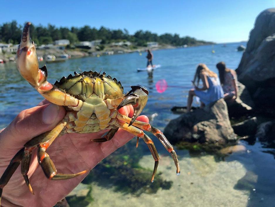 Det er norsk sommer på Breivik Camping. Den ene dagen blåser det friskt og temperaturene minner om høst. Neste morgen skinner solen, og både folk og krabber ønsker å få med seg godværet.