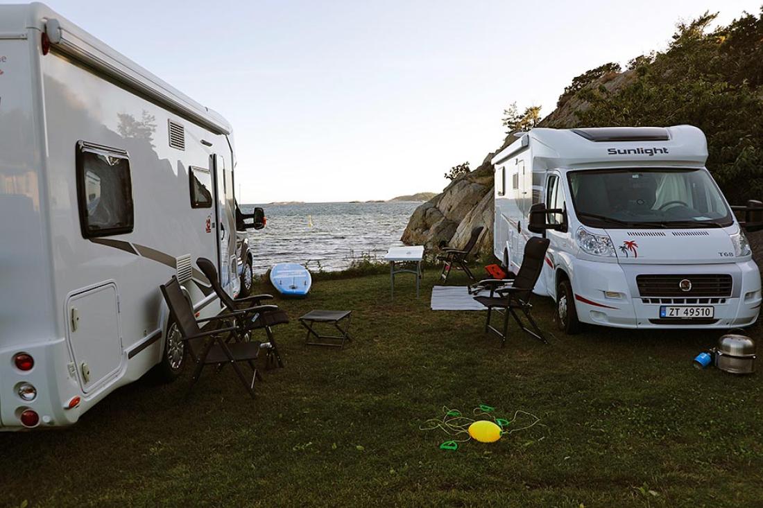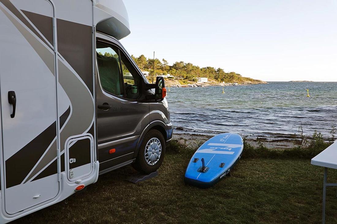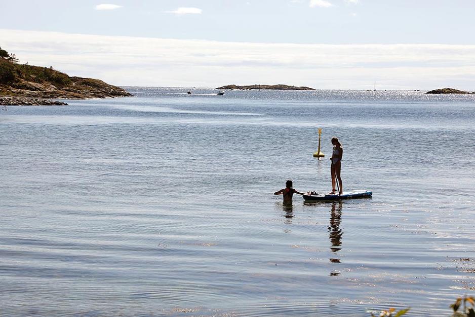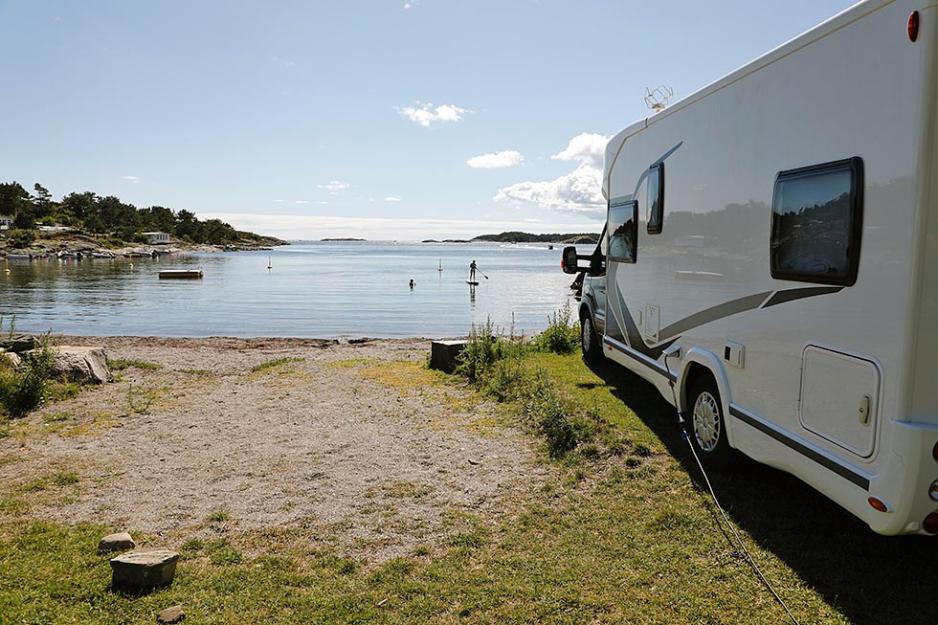 Breivik Camping tilbyr ikke gjestene Wi-Fi. I stedet byr vertskapet på fellesleker, allsang, aktiviteter for barna, og ikke minst en fantastisk strand med flytebrygge. Din Fritid parkerte helt nede ved vannkanten, og fikk noen flotte sommerdager på plassen utenfor Grimstad